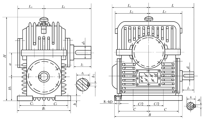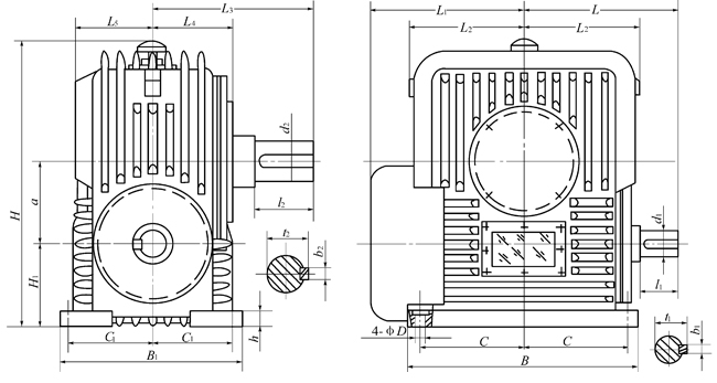 a | H1 | B | B1 | C | C1 | D | H | L | L1 | L2 | L3 | L4 | d1 | b1 | t1 | l1 | d2 | b2 | t2 | l2 | h |