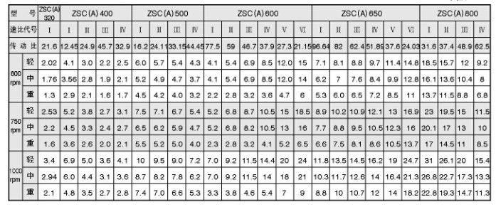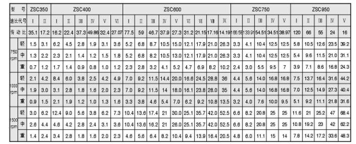 ZSC(A)懸掛式齒輪減速機傳動比表