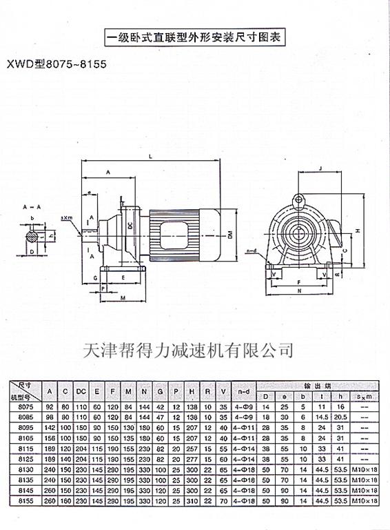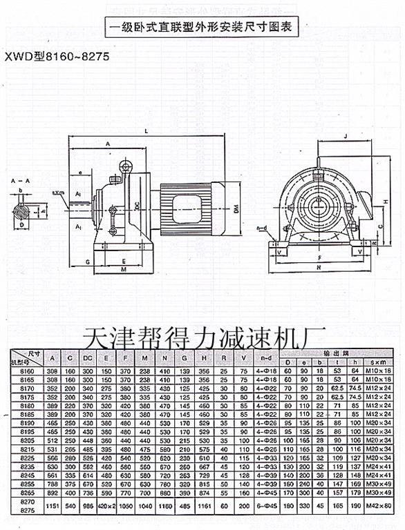 8000擺線針輪減速機(jī)安裝尺寸-擺線針輪減速機(jī)安裝尺寸-擺線減速機(jī)安裝尺寸-單級(jí)臥式直聯(lián)型外型及安裝尺寸-天津幫得力減速機(jī)有限公司