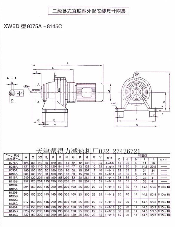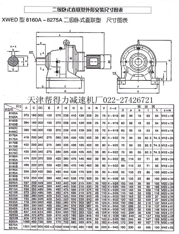 8000擺線針輪減速機(jī)安裝尺寸-擺線針輪減速機(jī)安裝尺寸-擺線減速機(jī)安裝尺寸-二級(jí)臥式直聯(lián)型外型及安裝尺寸-天津幫得力減速機(jī)有限公司